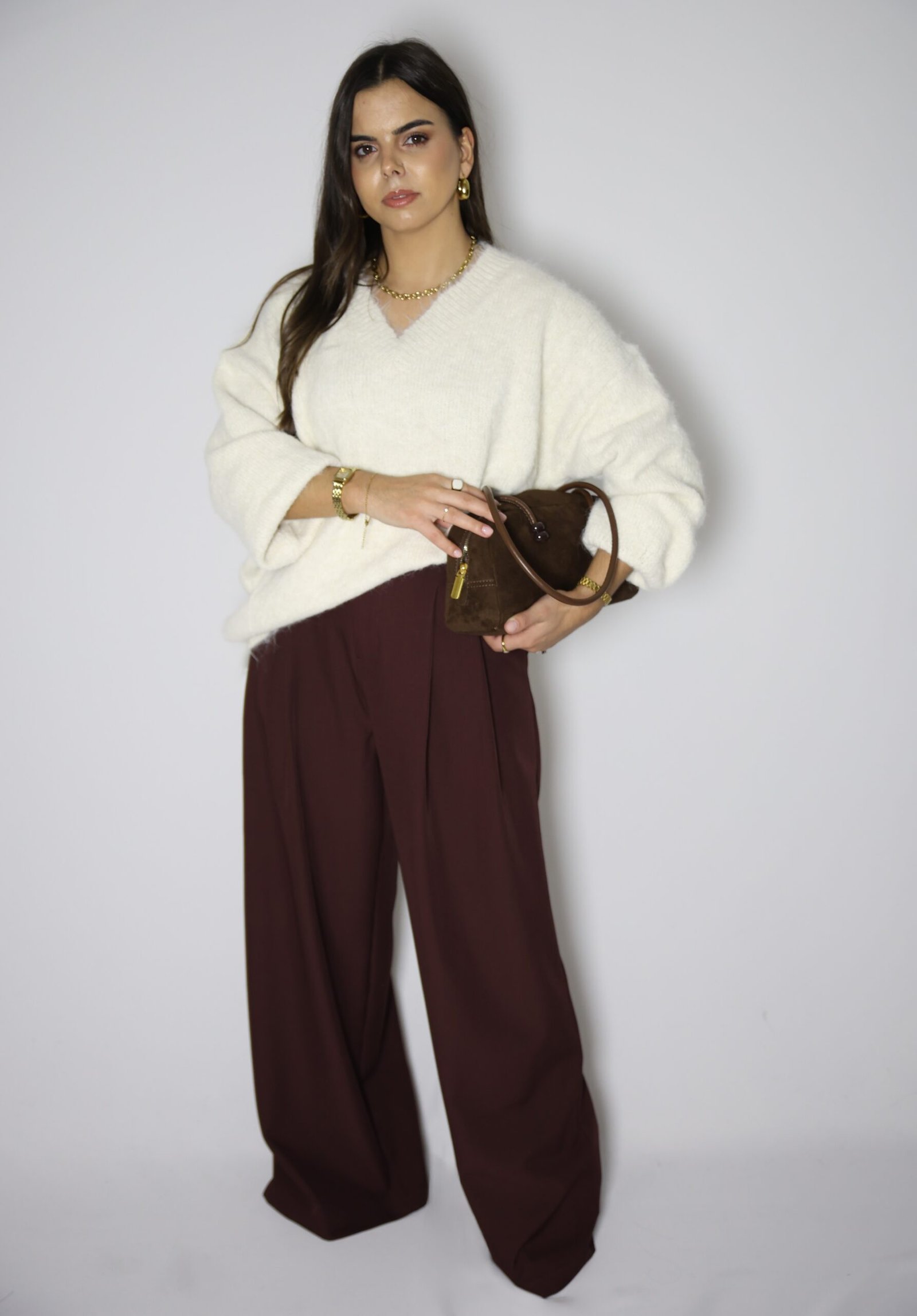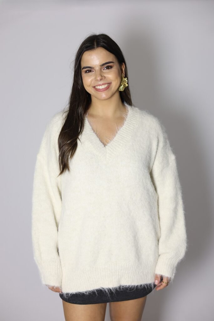 Camisola de decote em bico e manga comprida. Acabamento suave, e muito confortável.