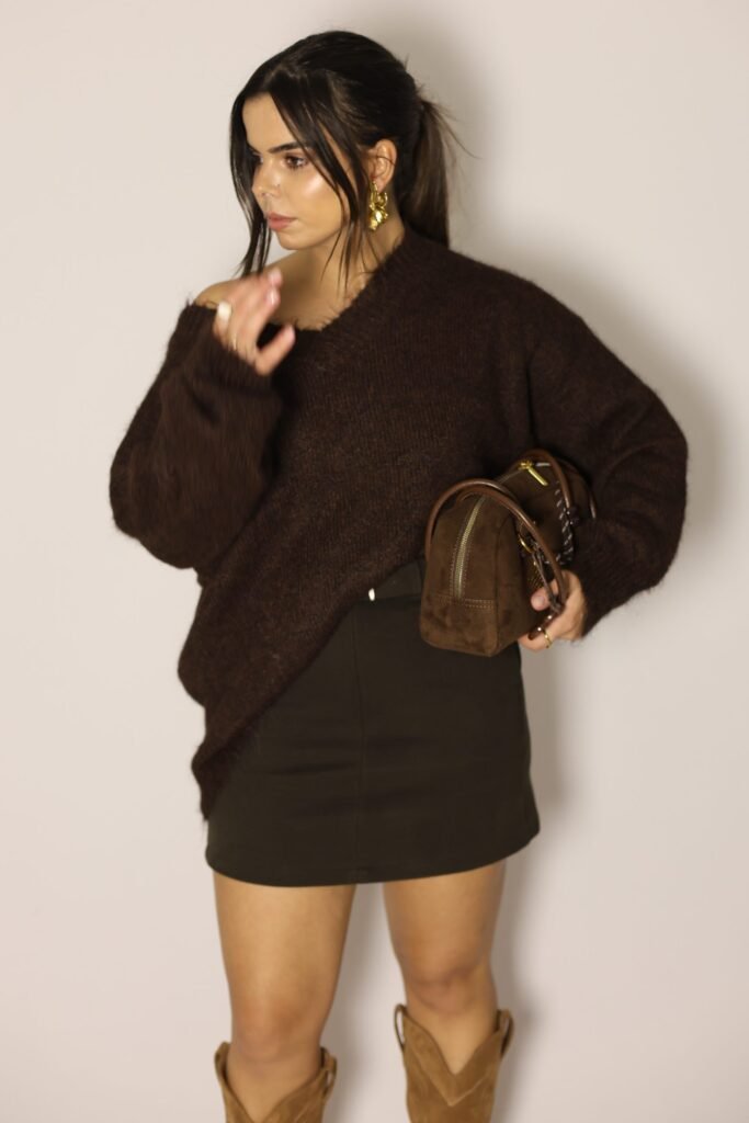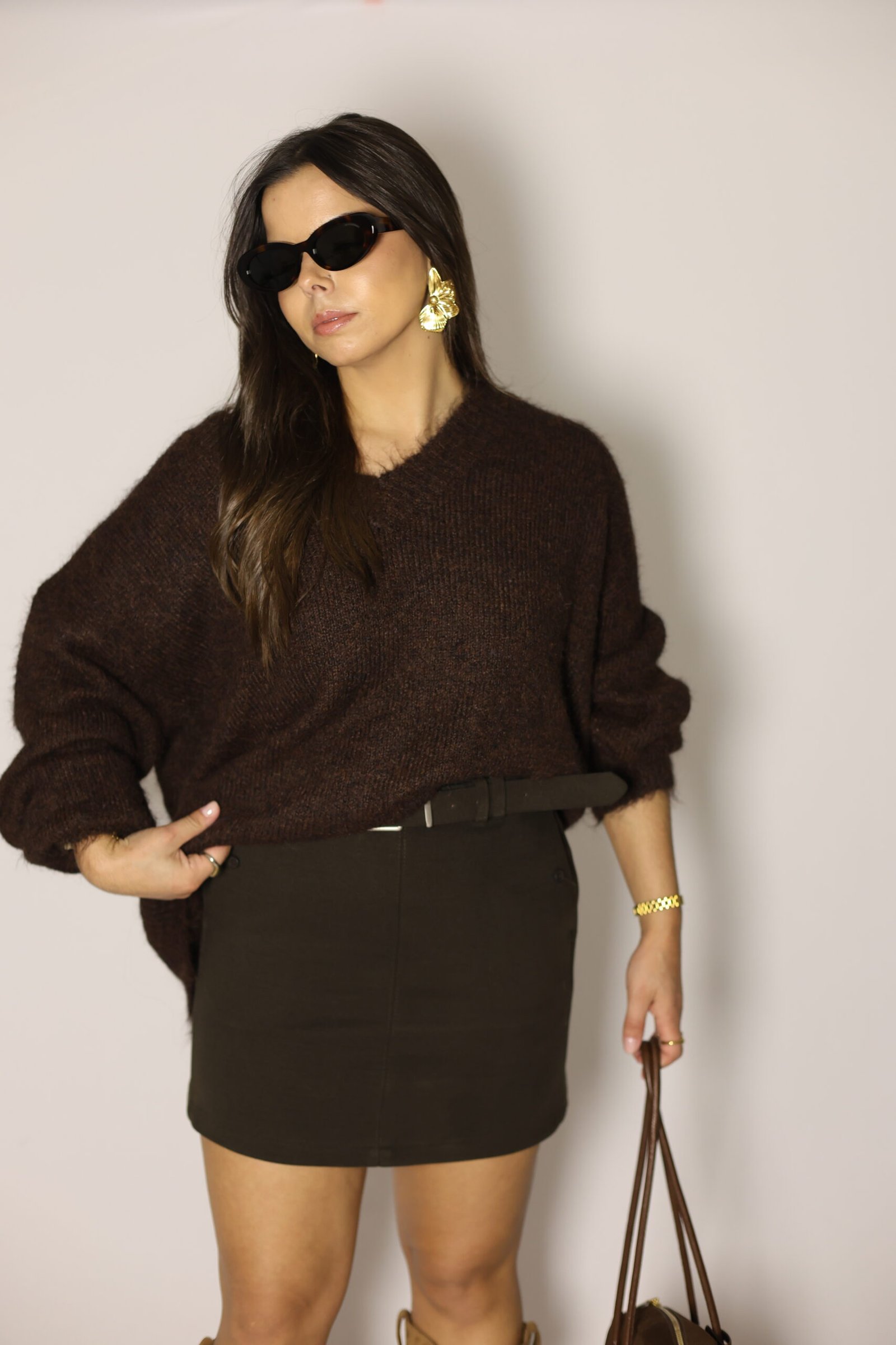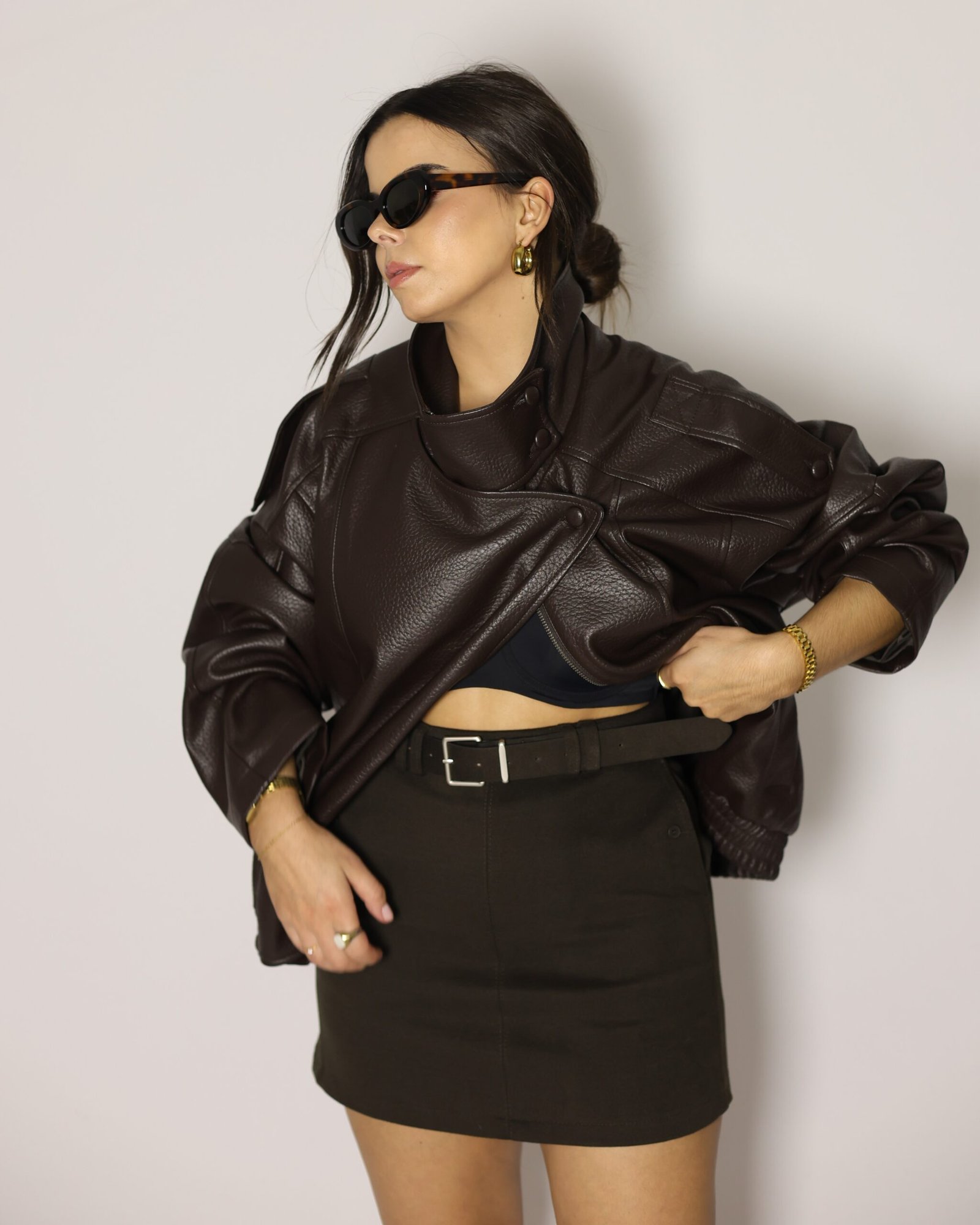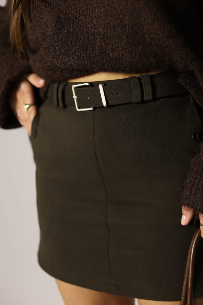 Saia-calção de cintura subida com cinto incluído e bolsos frontais. Fecho atrás invisível.